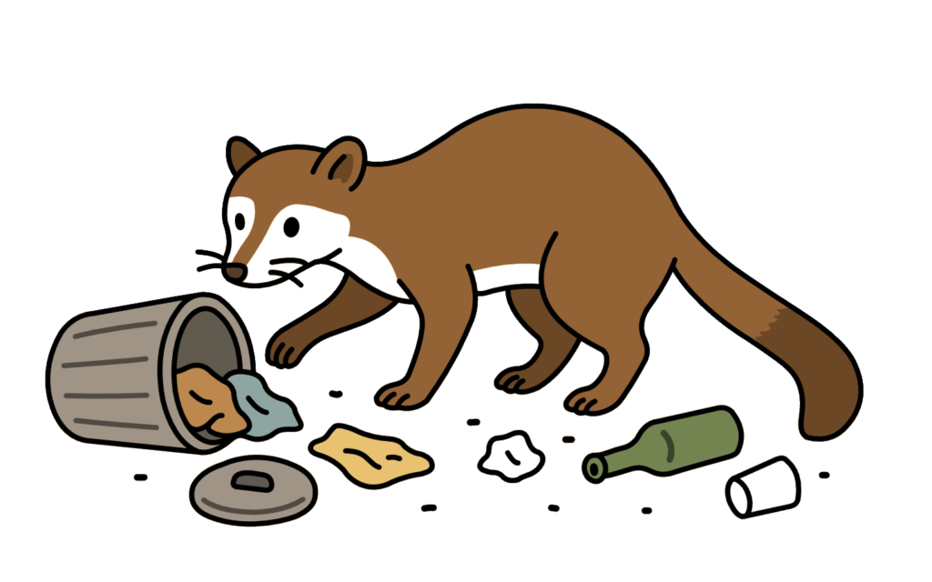 身体能力が高くて、垂直に近い壁でも登れてしまうイタチ。しかも記憶力も良いので、一度登れたところは忘れないところも厄介です。